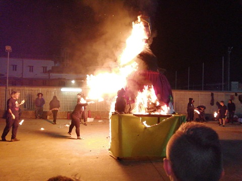 Azzano Mella 2019, presso l'oratorio, si brucia la vecchia! Tradizionale evento che viene ricordato ogni anno e che ha origini lontane, molto legate ai cicli della terra e pagane. Nel tempo ogni territorio e ogni quartiere ha elaborato la propria interpretazione di questa festa particolarmente attraente. Il fuoco che brucia e che rinnova la vita! I significati potrebbero essere molti, di sicuro non possono essere quelli attribuibili al rogo delle persone. Bisogna andare indietro molto nel tempo per comprendere l'essenza di questa festa, si può pensare addirittura ad intrecci di diverse culture e di diversi popoli, la magia di questa potenza che nel suo consumarsi rinnovava l'energia utile all'uomo. Saltabanco ha introdotto il rogo del 2019 con un breve spettacolo messo insieme dai ragazzi e dalle ragazze del ludospazio (ragazzi della scuola media). Una serata deliziosa che ha visto questi giovani esibirsi con giochi col fuoco.